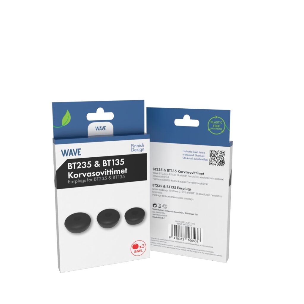 Audio Wave BT135 / BT235 Bluetooth handsfree-kuulokkeen korvasovittimet, 3 kpl, Musta Yhteensopiva laitteille – WAVE-BT135 ja WAVE-BT235 Katso lisää