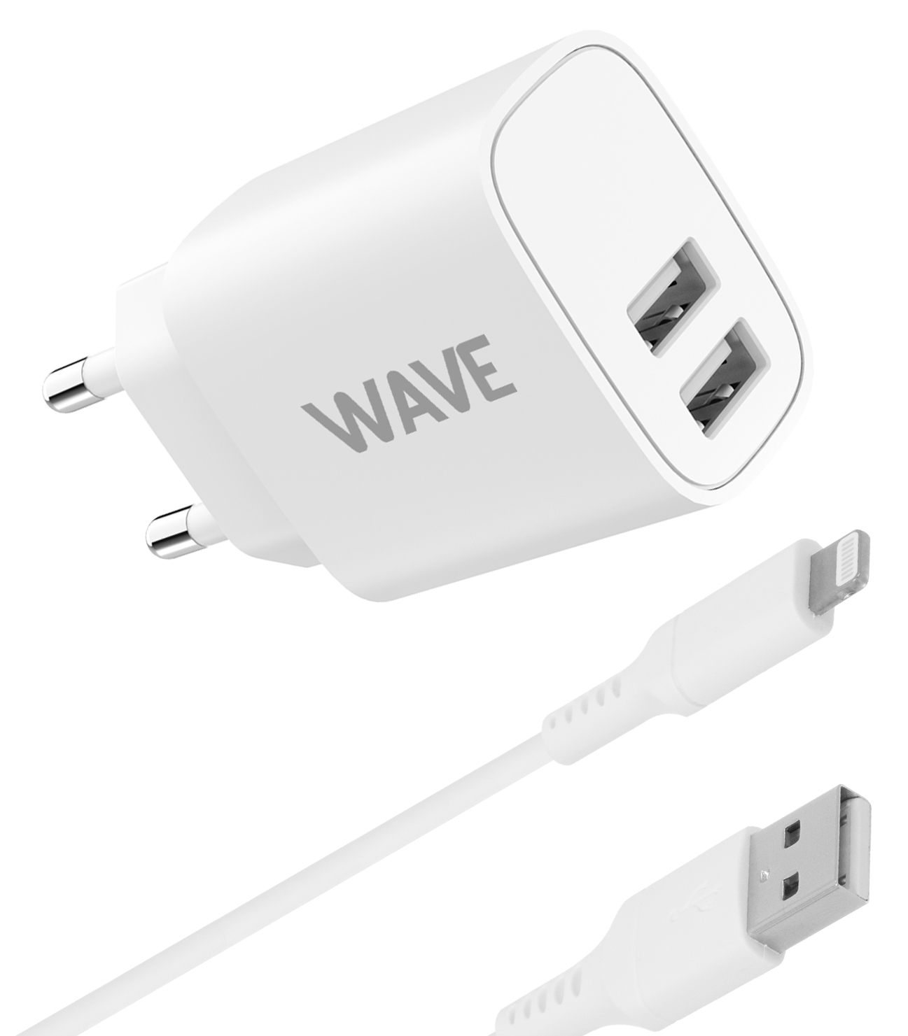 Wave USB verkkolaturi sopii jokapäiväiseen käyttöön ja kulkee tarvittaessa kätevästi mukanakin. Laturi kätkee pieneen kokoonsa runsaasti lataustehoa ja kahden USB-liitännän avulla voit ladata yhdellä laturilla jopa kahta laitetta samanaikaisesti. Pakkaus sisältää lisäksi yhden metrin pituisen Wave Apple Lightning (MFI) -kaapelin.