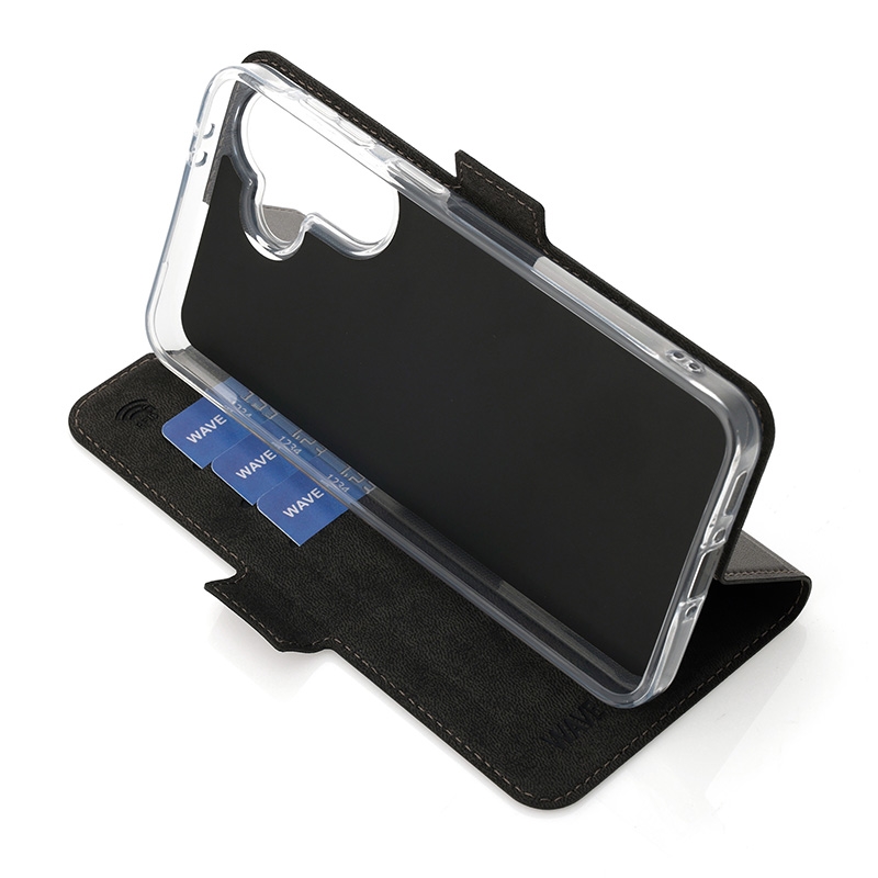 Wave Book Case on monipuolisilla ominaisuuksilla varustettu matkapuhelimen kannellinen suojakotelo, joka muotoilunsa ansiosta suojaa puhelinta kattavasti, lisäämättä kuitenkaan paljoa paksuutta puhelimen ympärille.