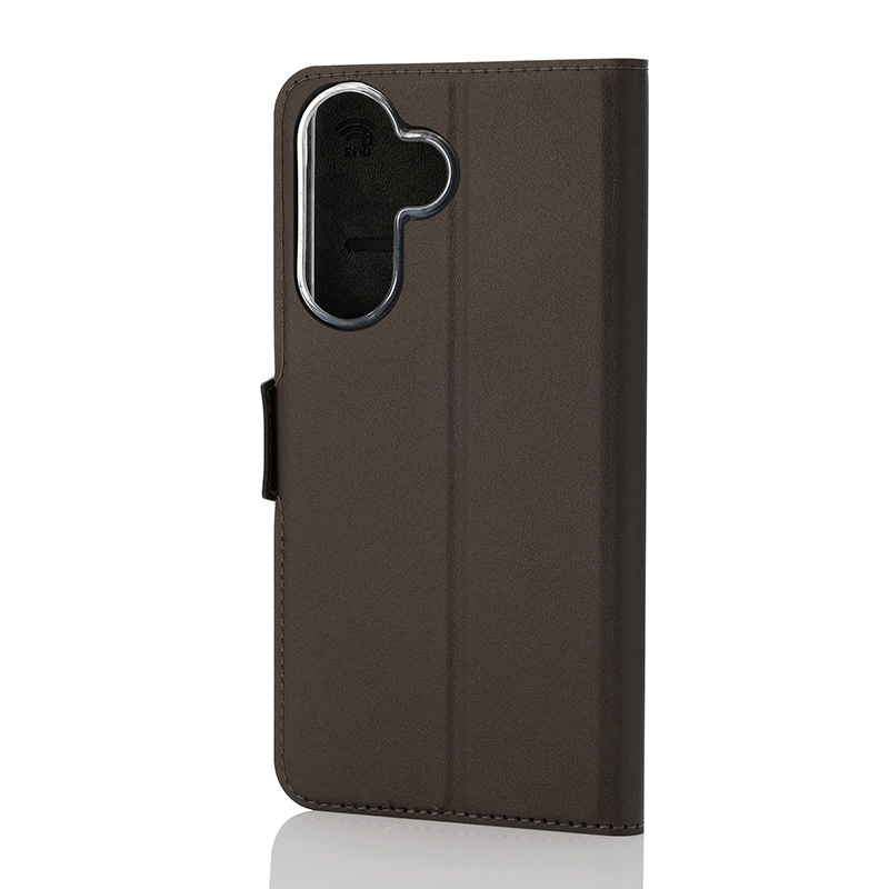 Kotelon kuoriosa on valmistettu laadukkaasta nahasta ja puhelimen kelkka läpinäkyvästä TPU-muovista. Lopputuloksena on ammattitaidolla käsin valmistettu, laadukas ja äärimmäisen ohut puhelimen kannellinen suojakotelo.