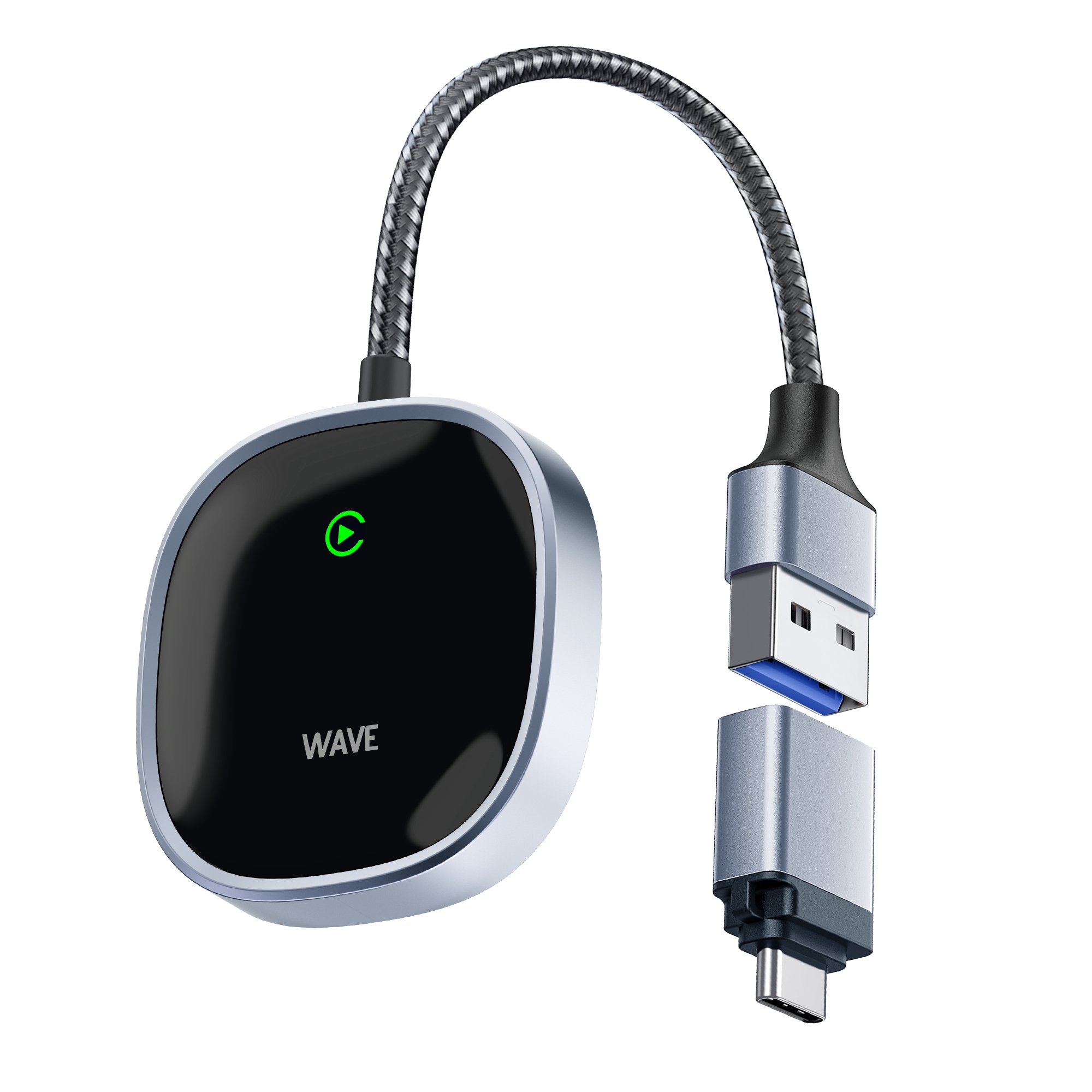 – Myyntipakkauksen sisältö: Wave Langaton CarPlay & Android Auto sovitin, USB Type-C -adapteri ja pikakäyttöopas