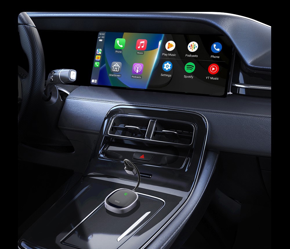 Wave Android Auto / CarPlay -sovittimen avulla päivität ajoneuvosi jo olemassa olevan langallisen viihdejärjestelmän käden käänteessä ja saat puhelimestasi tutut navigointi-, musiikki-, puhelu- ja viestitoiminnot käyttöösi ajoneuvosi näytölle – täysin langattomasti!