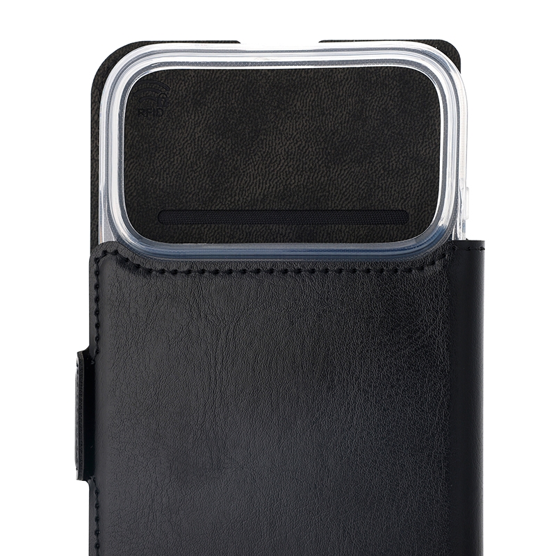 Kannen sisäpuolella on kolme korttipaikkaa, jotka on suojattu RFID etälukemiselta. Näin tärkeimmät kortit pysyvät aina mukana ja turvassa.