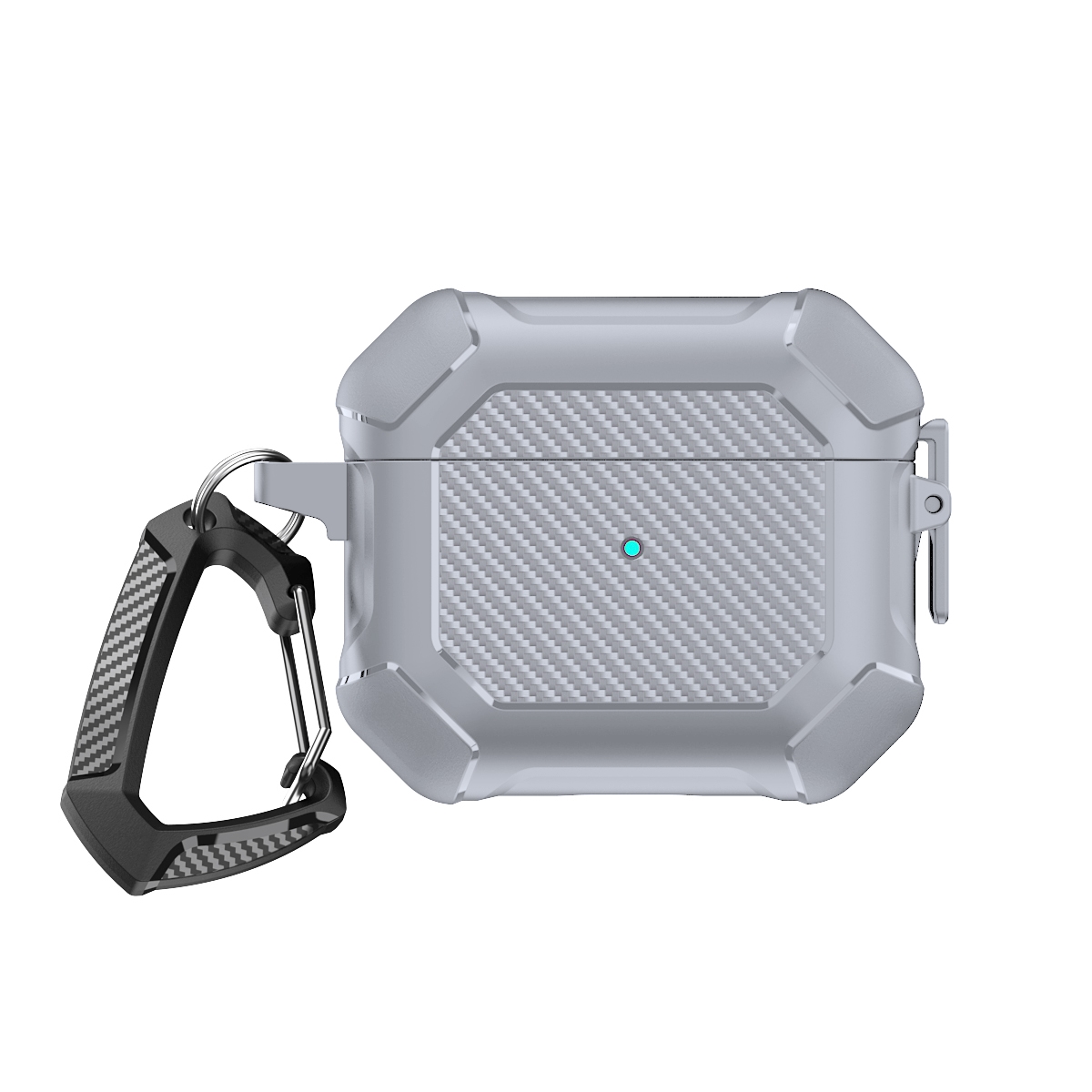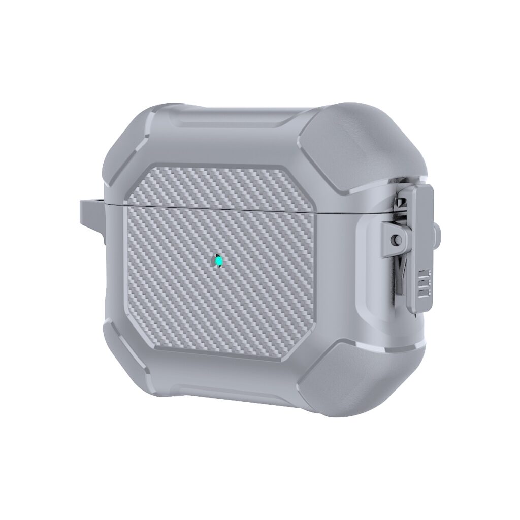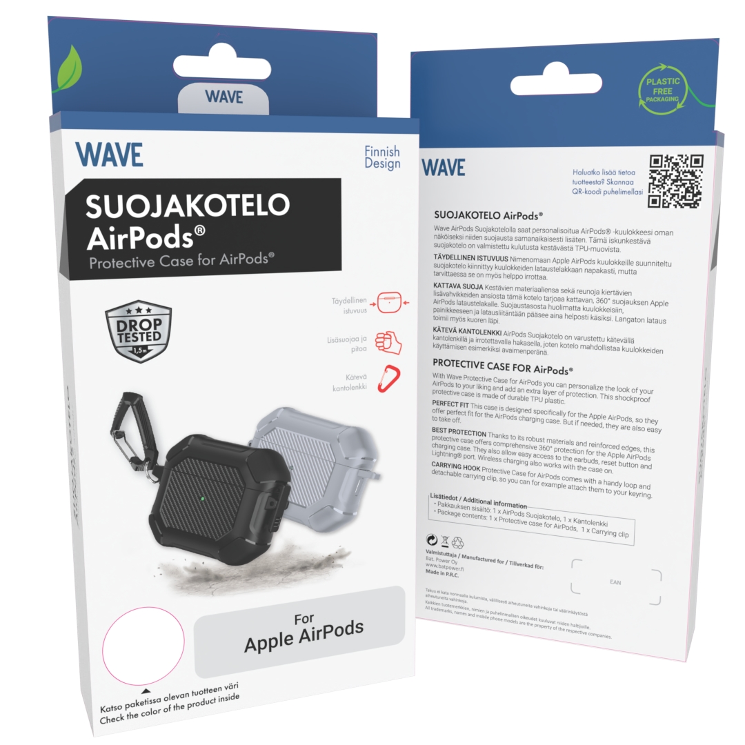 – Myyntipakkauksen sisältö: Wave Rugged AirPods -suojakotelo (Vaaleanharmaa) ja karabiinihakanen (Musta)